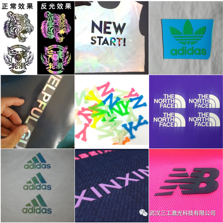 适用于运动服饰、休闲服饰、童装、特种服饰、衣帽、鞋业、等行业的激光打标和模切。PVC刻字膜、TPU刻字膜、PU亚光刻字膜、夜光刻字膜、镭射软金属刻字膜、喷绘打印膜、反光刻字膜、植绒刻字膜、金葱刻字膜、反光丝印膜、弱溶剂打印膜、装饰膜、皮标、布标等材料。