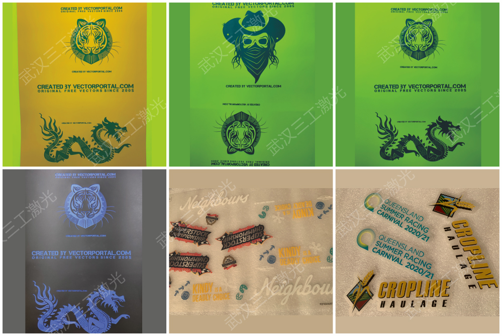 刻字膜须和激光打标机及烫画机配套使用,非常方便,还可套色转印,可回粘,以增加承应物的丰富性和变化性,且不受限于布料的颜色,只要是布料材质皆可转印,转印后具有优越的洗水色牢度及胶粘牢度。该产品广泛应用于单色图形、球队制服的队标、运动号码、标志、广告、海报、公司logo等。
