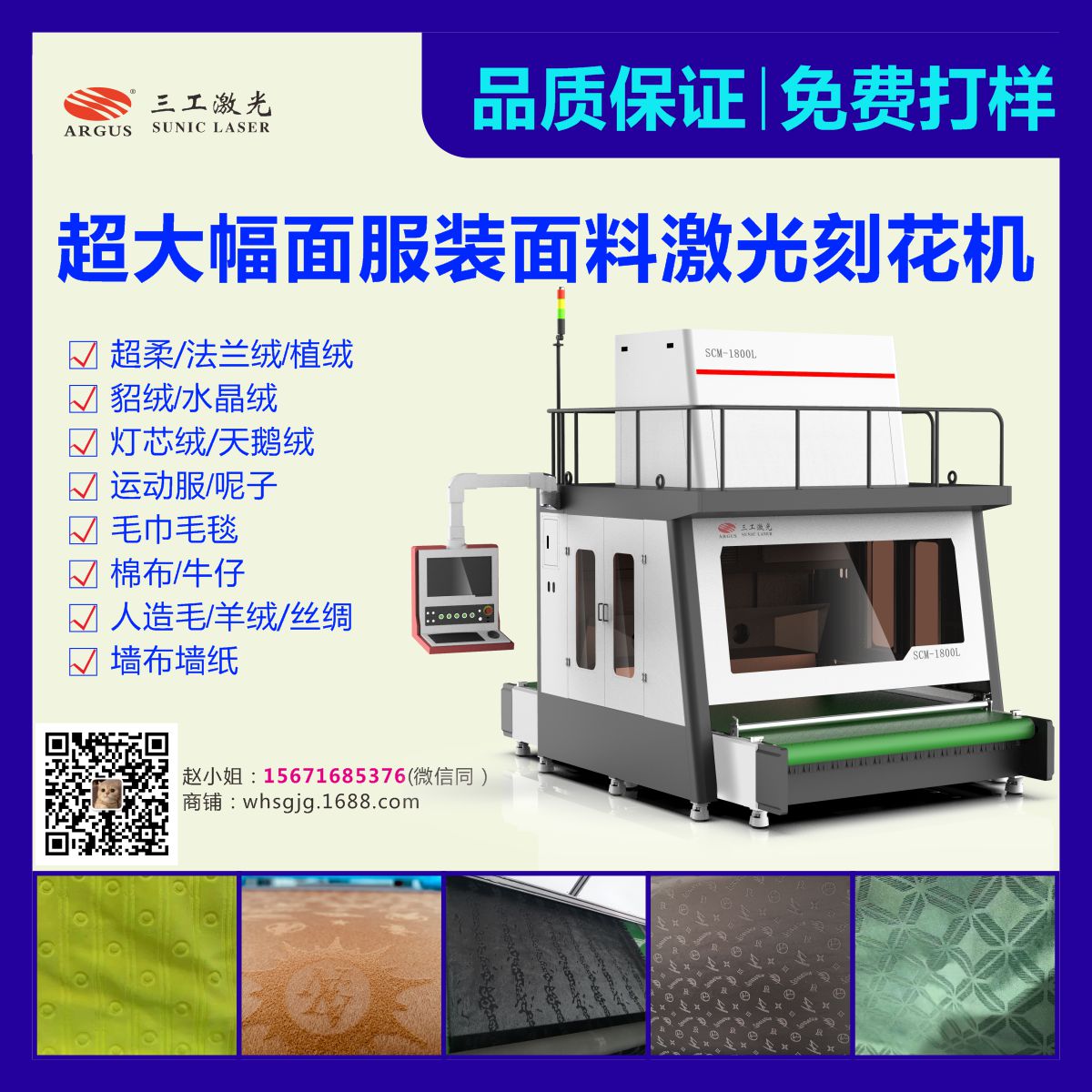 该设备是利用激光的热效应,无接触的对面料进行烧灼刻蚀,并形成凸凹有致的花型图案。